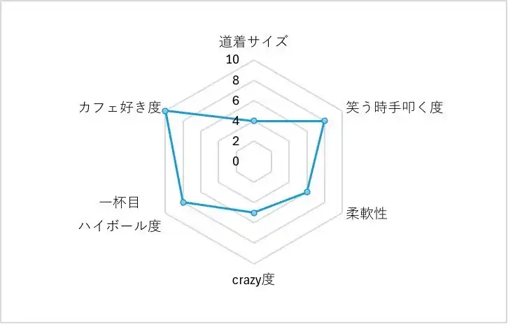 いつも武道場で綺麗な歯を見せて笑ってる、そんな華ちゃん。彼女の合気道はとにかく姿勢が綺麗。背筋の伸びた演武は一見の価値あり!また彼女は字も超綺麗。書道の階級はなんと師範。ちなみに華道も師範。師範の二刀流で、もはや芸道界の大谷翔平である。合気道でも黒帯をとって、これから彼女はどの道を極めるのか?必見である。それと彼女は智弁和歌山出身で野球が好きです。野球好きの人達は是非話してみてください。